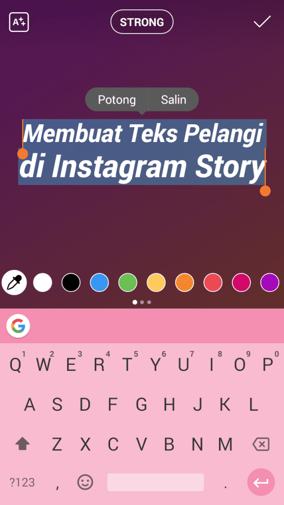Memang hal ini cukup sulit untuk dilakukan, namun teks selesai akan terlihat sangat menarik. Sekian tutorial “Cara Membuat Teks Pelangi di Instagram Story”. Jangan ragu untuk menyampaikan saran dan kritik pada kolom komentar. Selamat mencoba.
