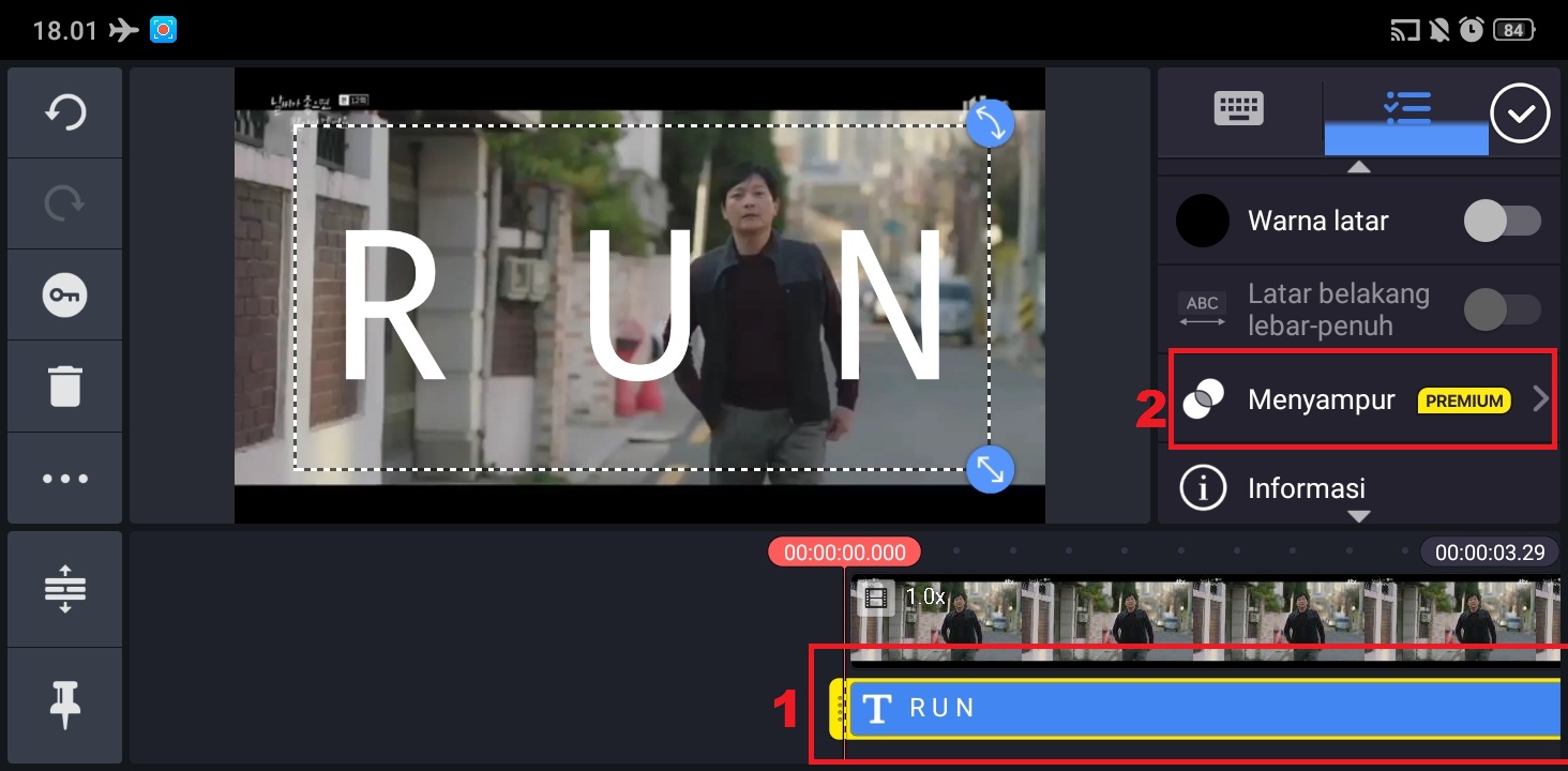 1. Sebelum membuat video dengan teks dibelakang objek, perlu diingat pilih video yang memiliki objek gelap.