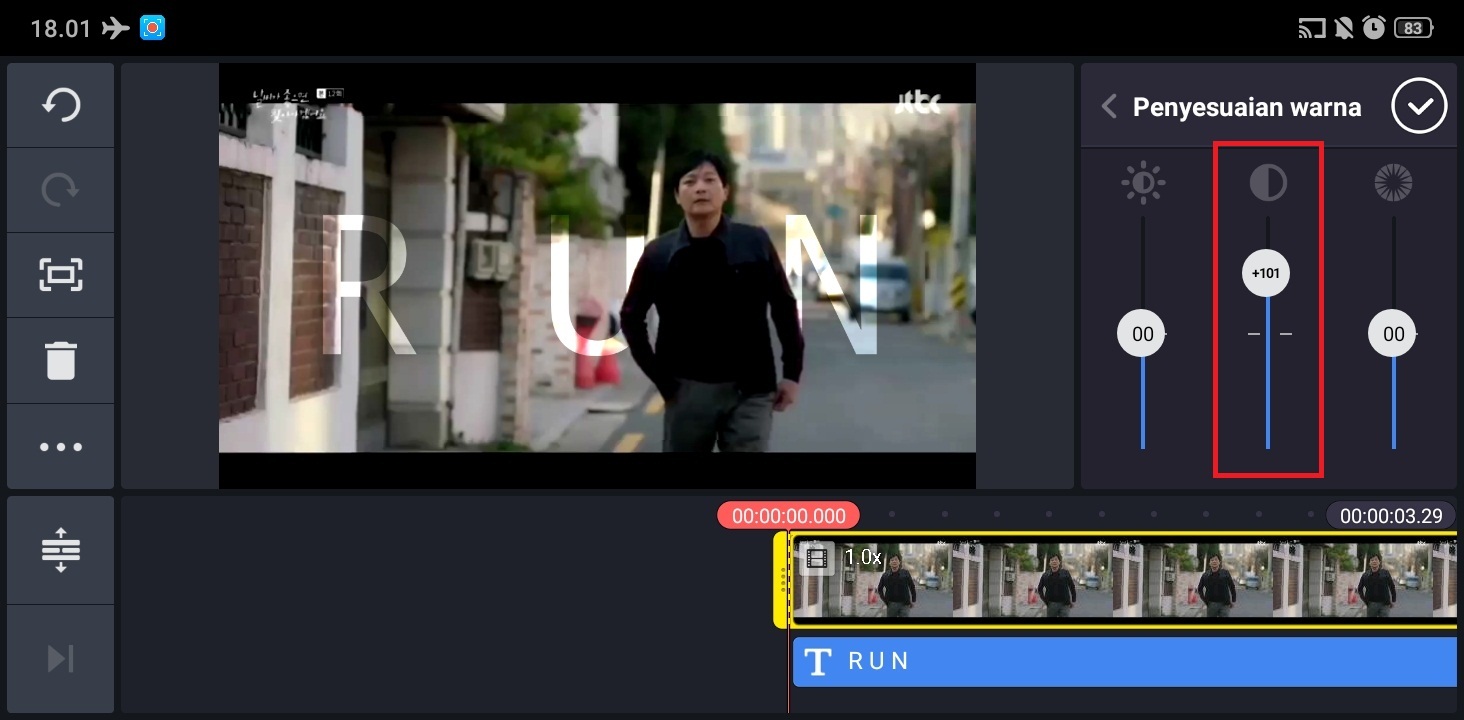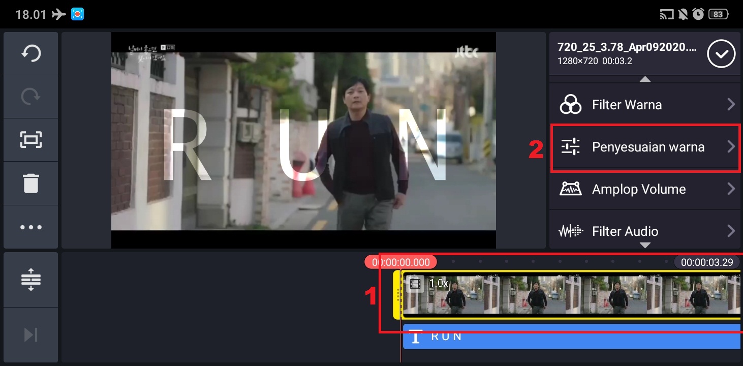 10. Naikkan kontras warna video dengan cara pilih lapisan video lalu pilih fitur Penyesuaian warna.