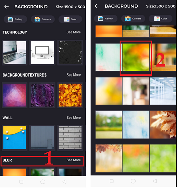 Aplikasi Thumbnail akan menampilkan beberapa pilihan background, selain itu kamu bisa juga memilih background di galeri perangkat kamu atau klik camera untuk mengambil background foto secara langsung. Pilih background sesuai dengan kebutuhan kamu.