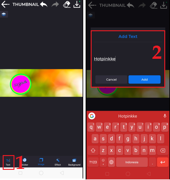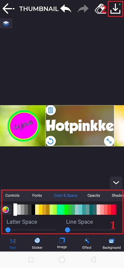 Atur posisi dan warna teks sesuai dengan kebutuhan kamu. Klik ikon download di pojok kanan atas untuk menyimpan hasil thumbnail.