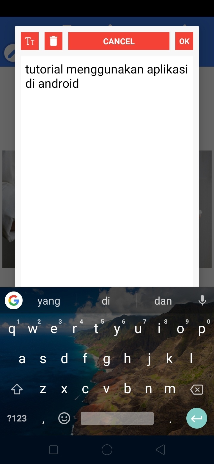 Tulis teks dan klik ok.