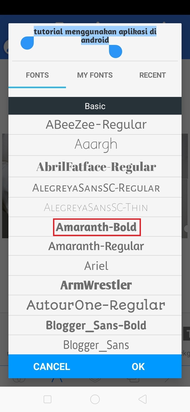 Pilih font dan klik ok.