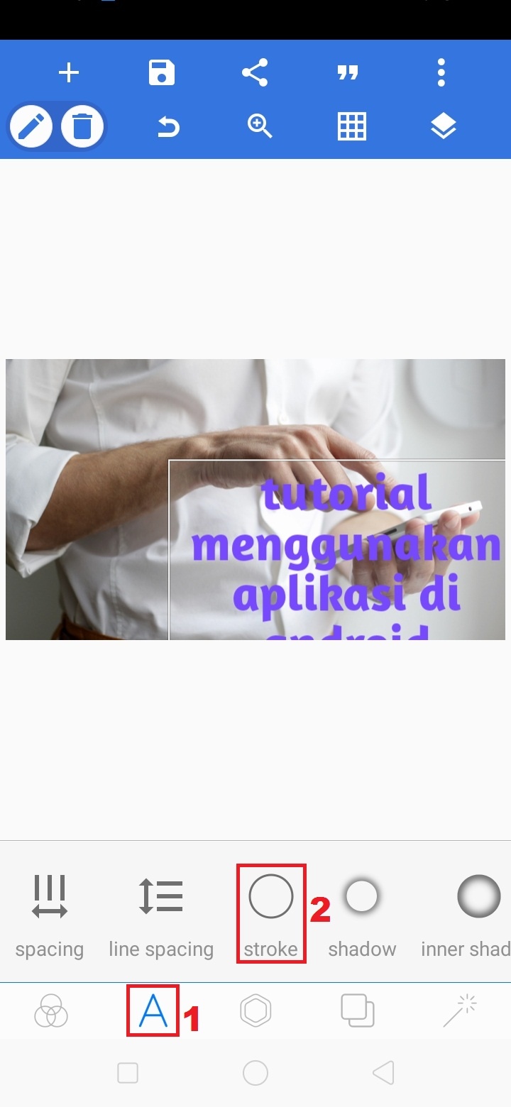 11. Klik ikon ‘A’ – pilihstroke untuk memberi garis tepi pada teks.