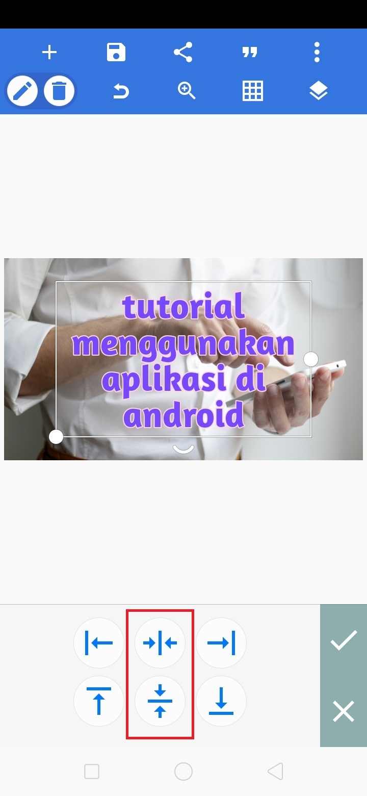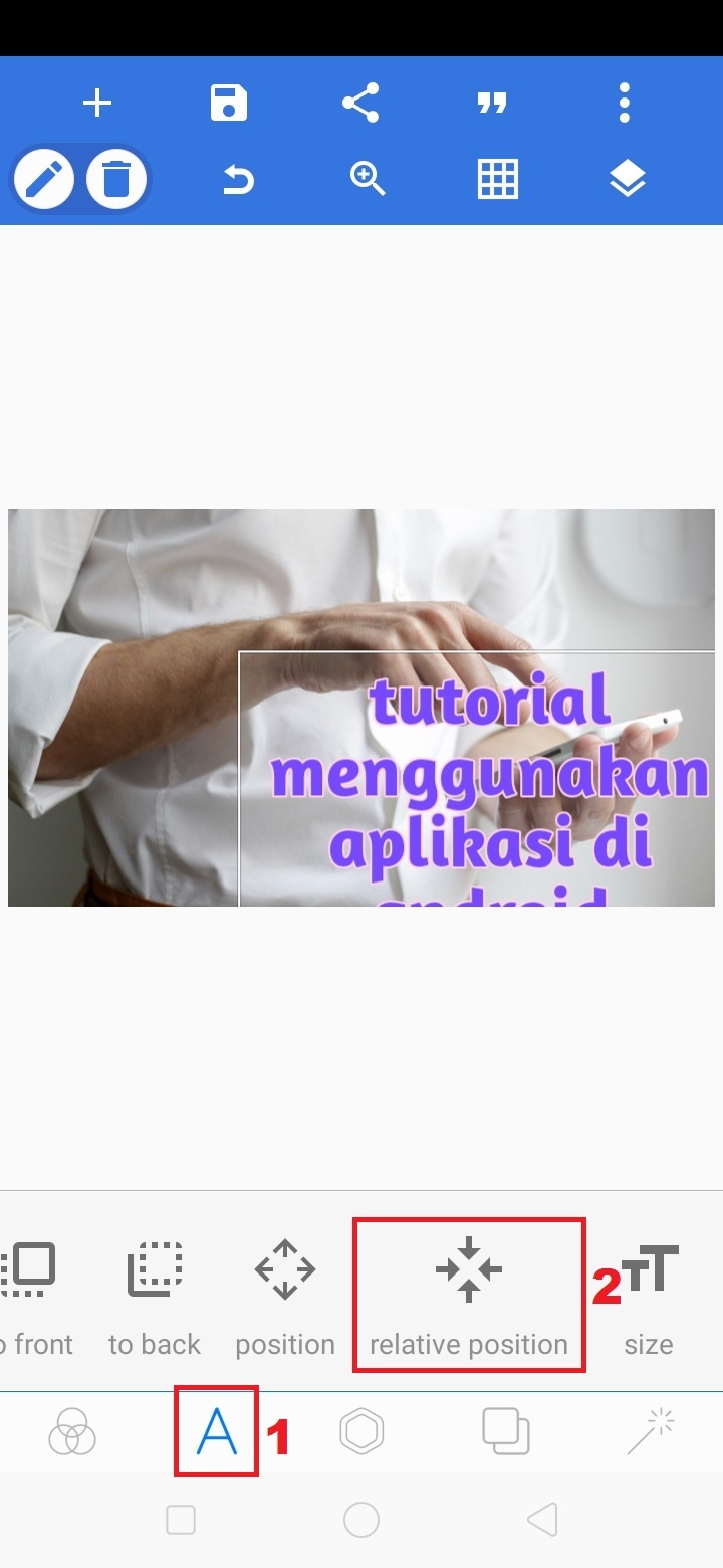 12. Klik ikon ‘A’ – pilih relative position untuk menempatkan teks di tengah gambar.