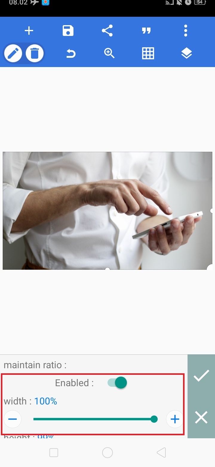 Aktifkan enable, dan naikkan nilai width menjadi 100%.