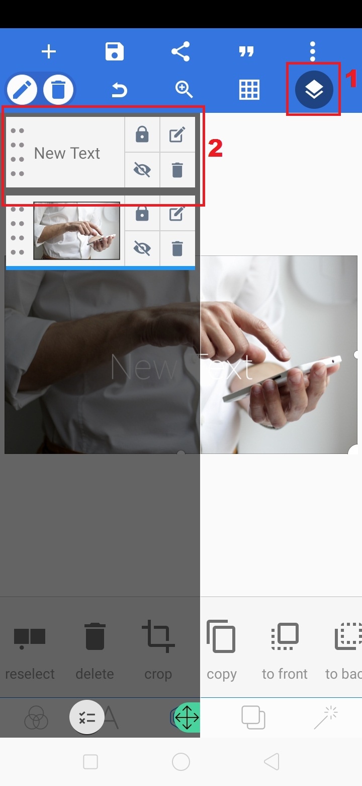 7. Buka menu ‘Lapisan’, dan pindahkan lapisan text di atas lapisan gambar. Tutup lapisan.