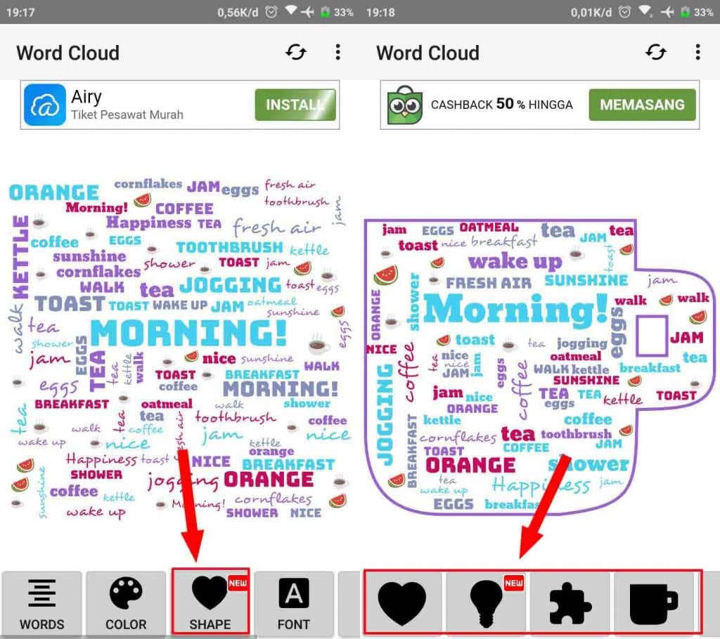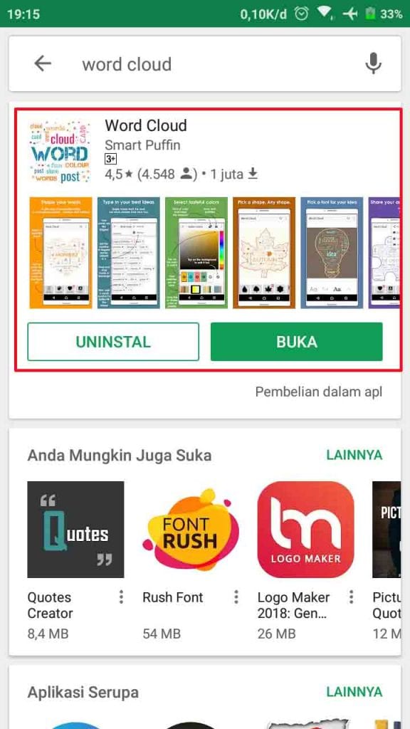 1. Download dan install terlebih dahulu aplikasi Word Cloud di Play Store.