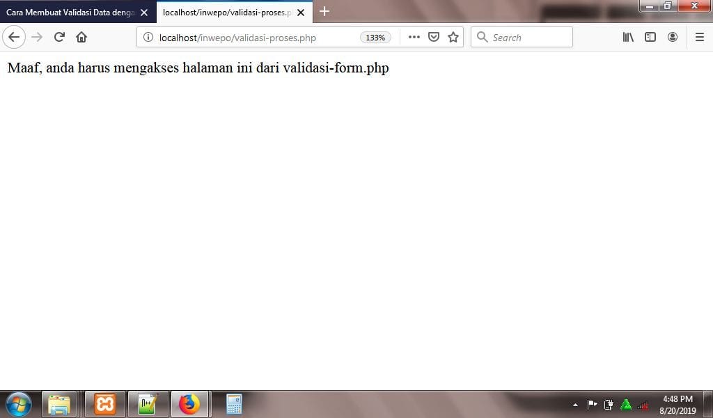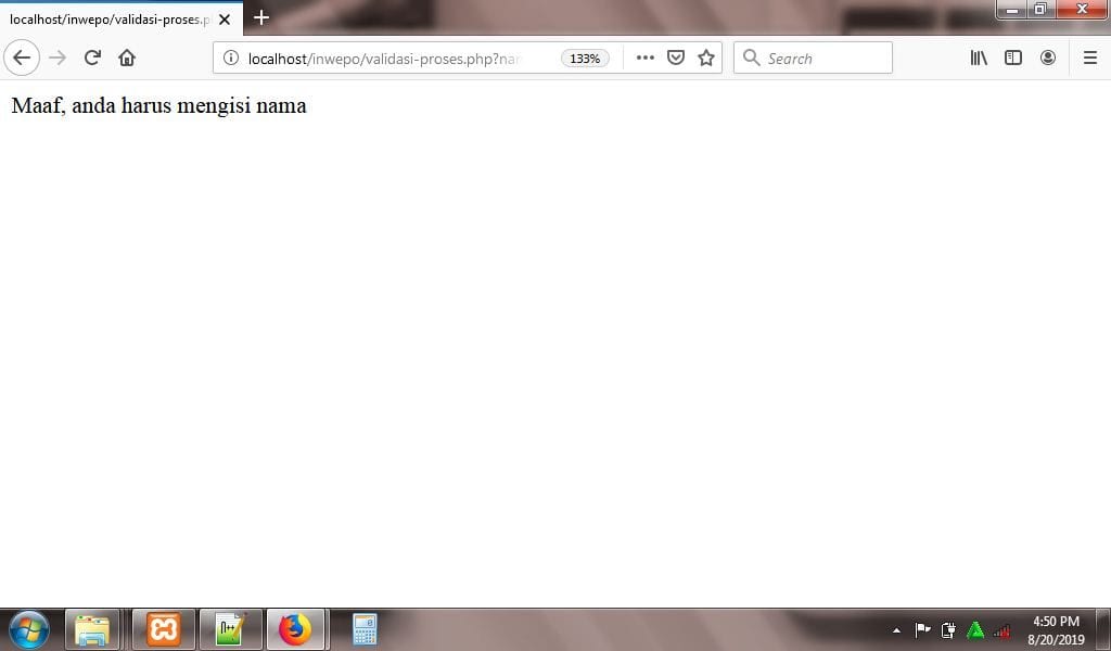 3. Untuk melihat hasil script code di atas, kamu bisa buka browser kamu ketiklah http://localhost/inwepo/validasi-form.php