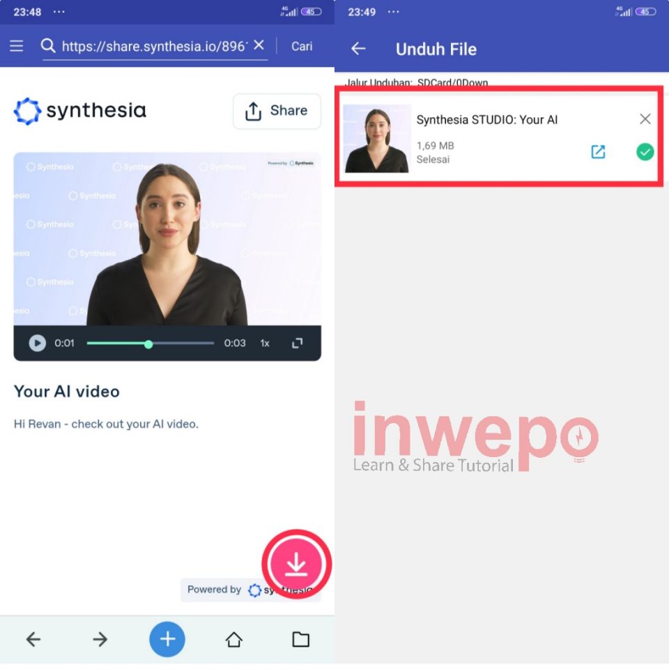 4. Jika sudah muncul tap icon download yang ada di bagian bawah, jika sudah terdownload akan secara otomatis masuk ke galeri dan tersimpan pada folder unduh file.