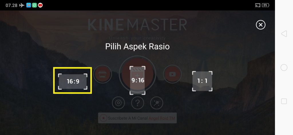 4. Pilih aspek rasio video. Disini saya menggunakan aspek rasio vide0 16:9.