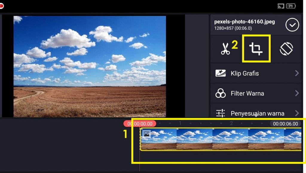 7. Pilih ‘Pemangkasan’ untuk melebarkan atau mengecilkan tampilan foto.