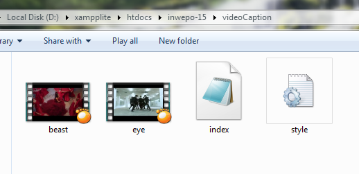 Simpan kode HTLM5 diatas di folder xampplite – htdocs – buat folder baru dengan nama VideoCaption, simpan kode diatas dengan nama index.html.