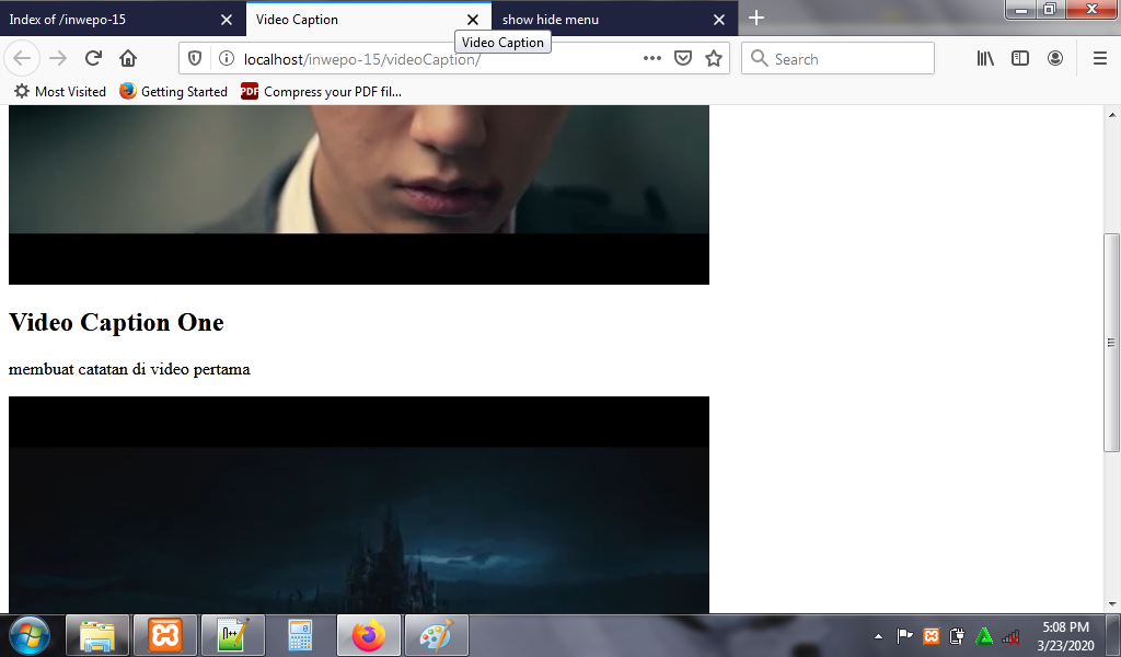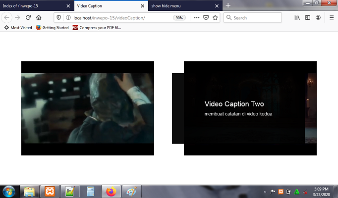 4. Untuk melihat hasil script code diatas, kamu bisa buka browser kamu ketiklah http://localhost/VideoCaption