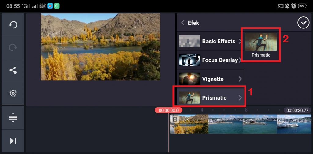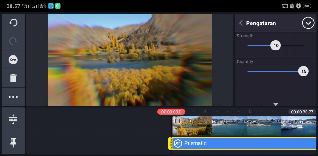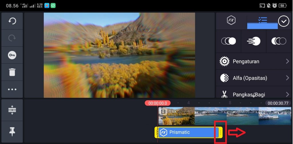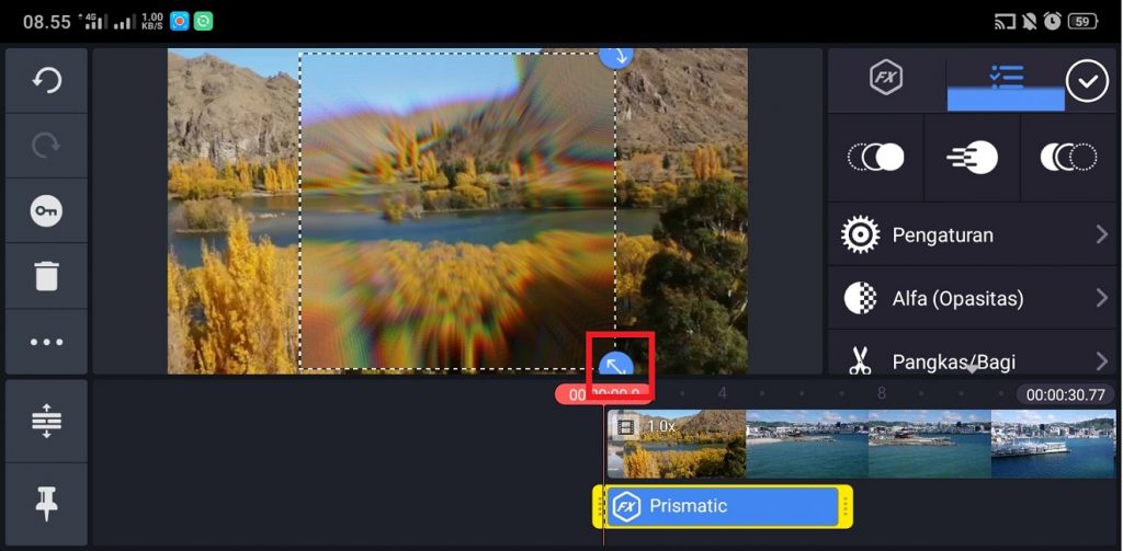 9. Atur lebar efek sesuai dengan kebutuhan. Kamu membesarkan efek, mengecilkan efek, bahkan memutar efek sesuai dengan kebutuhan video kamu.
