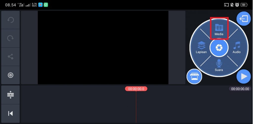 4. Kembali ke menu utama, dan klik icon ‘+’ untuk memulai edit video.