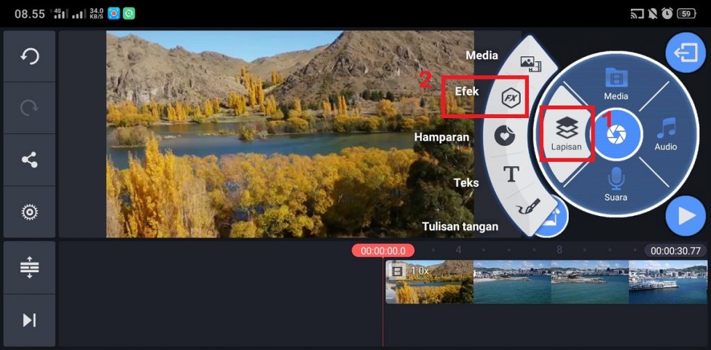 8. Klik ‘Lapisan’ – pilih ‘Efek’.
