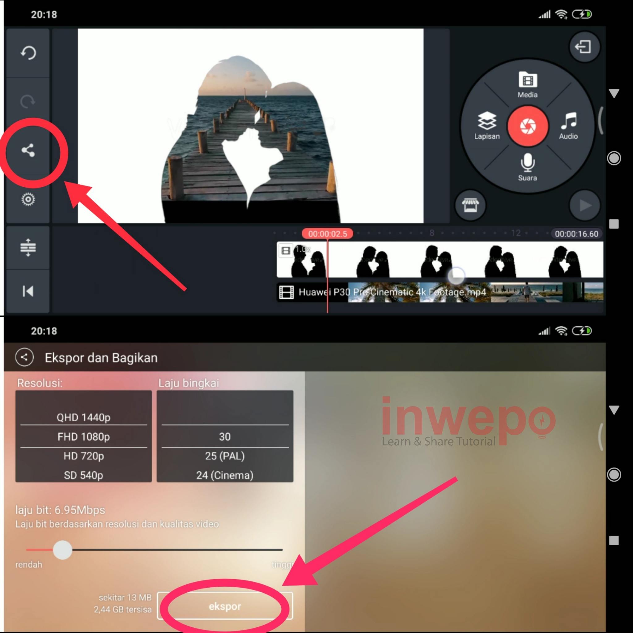 7. tap icon share kemudian tap Ekspor untuk menyimpannya ke galeri smartphone.