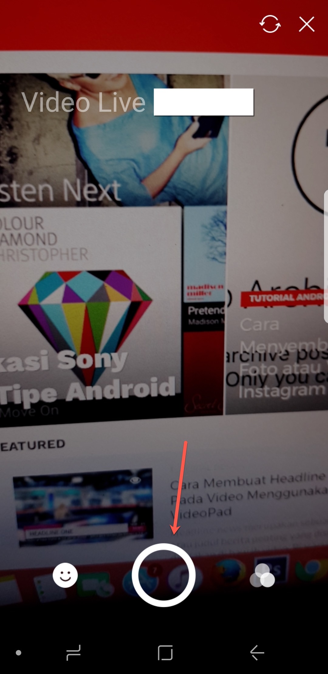 4. Tap tombol lingkaran untuk memulai streaming video.