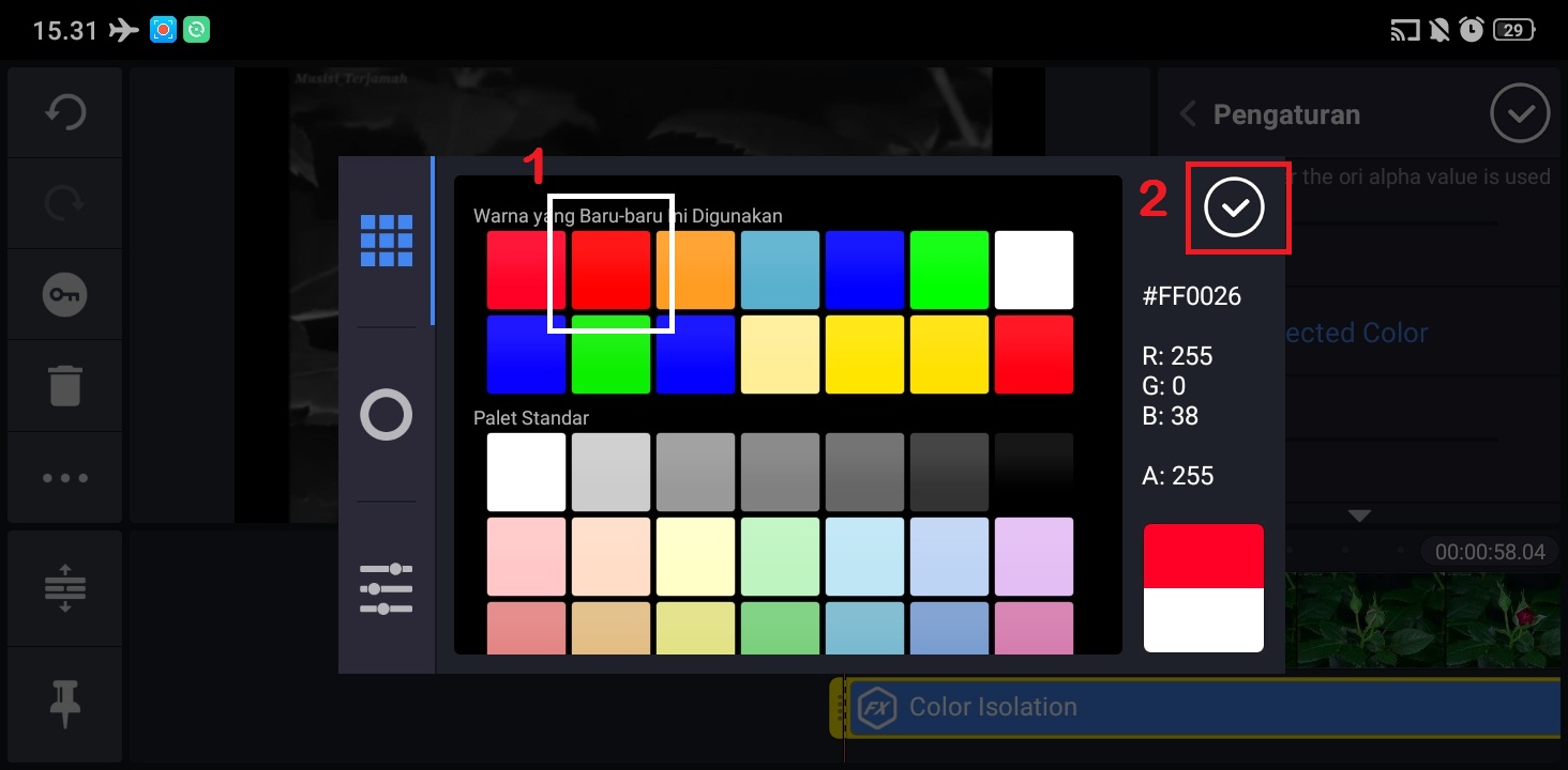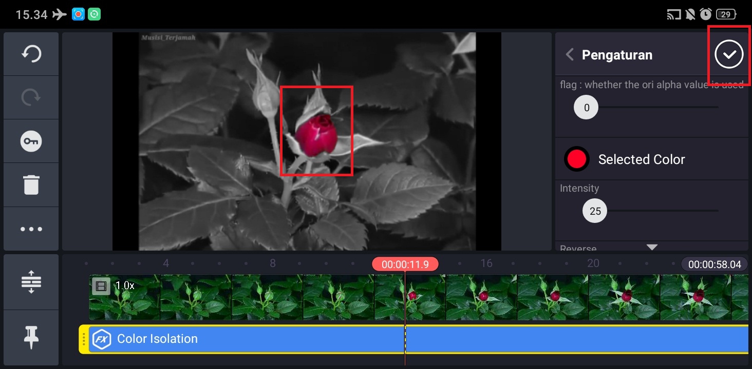 Pilih warna sesuai dengan warna bunga, dan klik centang.