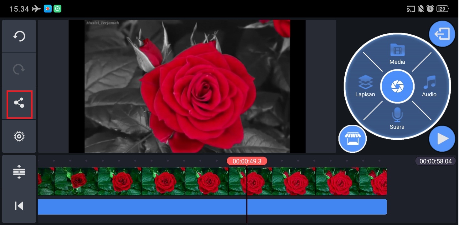 12. Klik icon share dan selesai. Sekarang kamu bisa membagikan video kamu ke social media, dan Youtube.