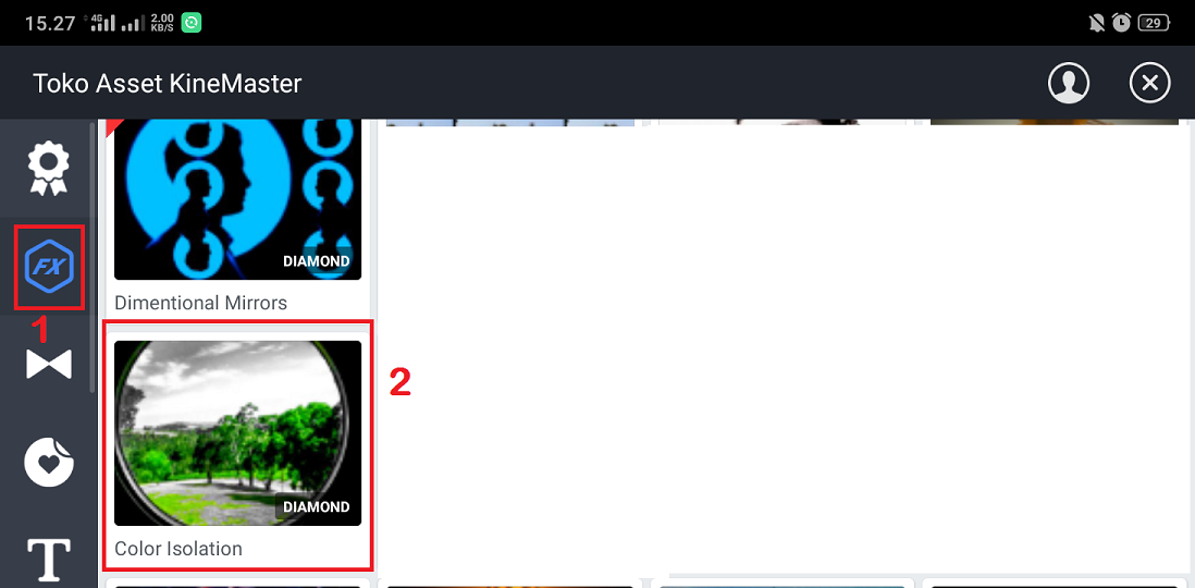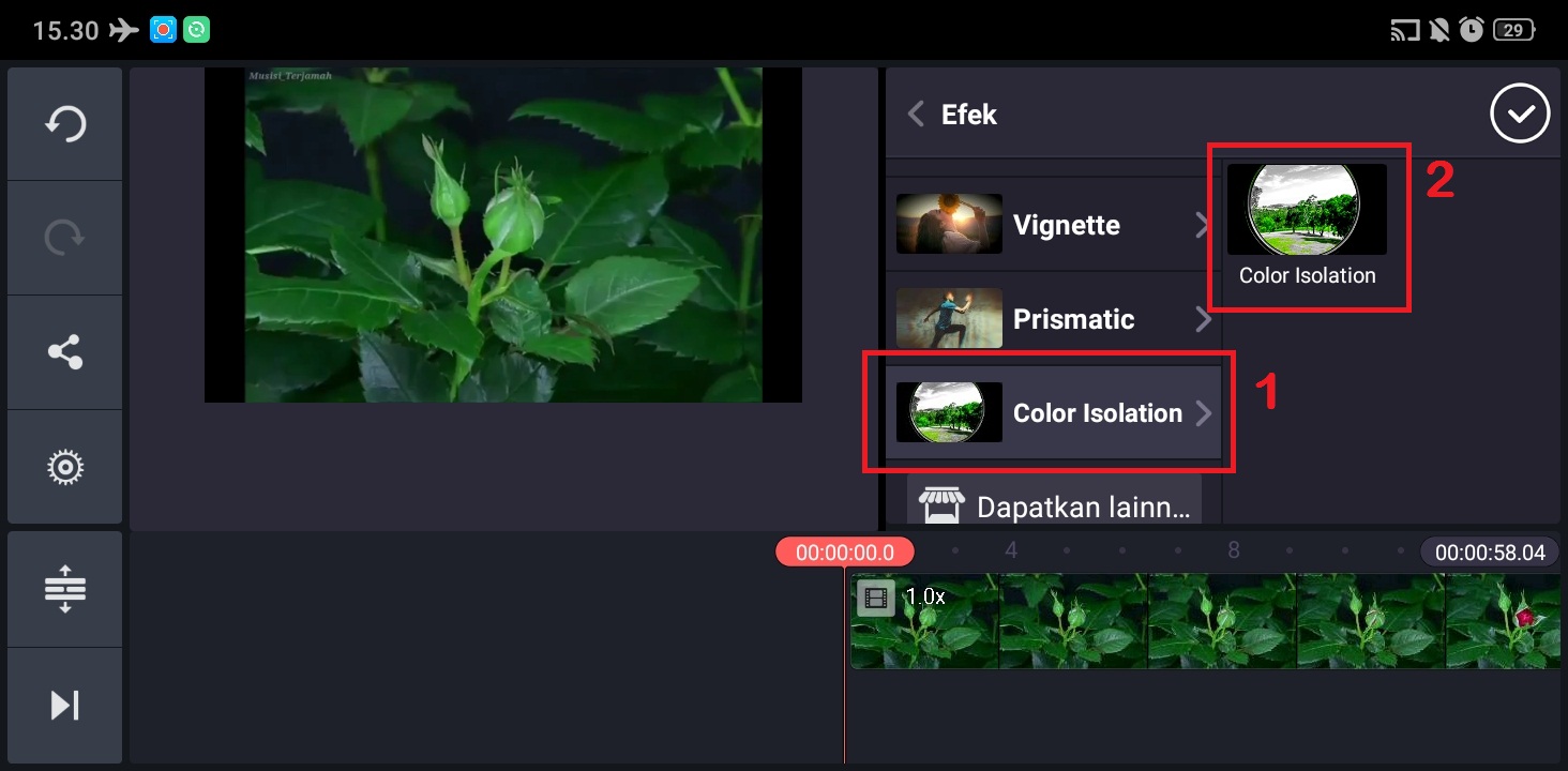 3. Klik ikon ‘Efek’, dan download efek ‘Color Isolation’.