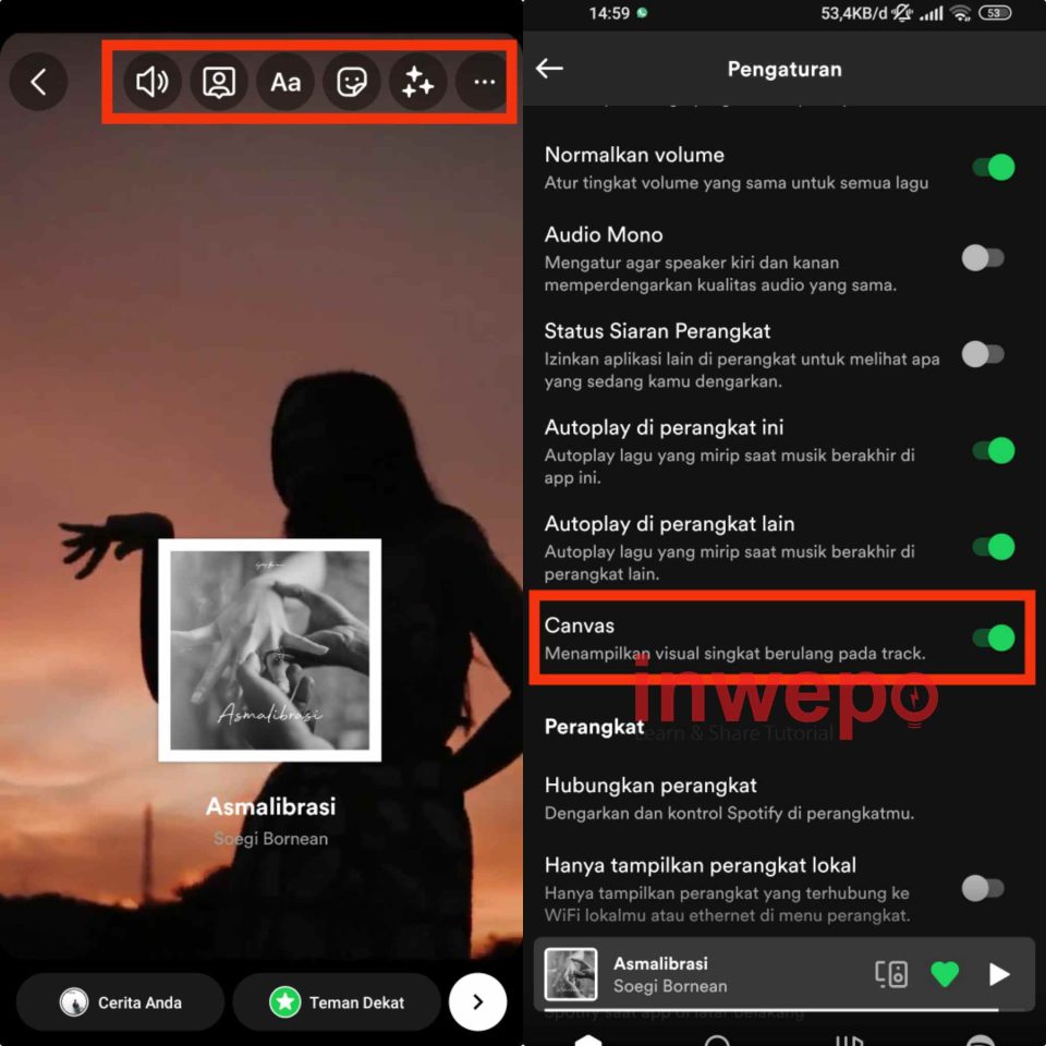 Sudah tau fitur Canvas di Spotify? Nah, pada kesempatan kali ini inwepo akan membagikan cara membuat story musik video dari canvas spotify.