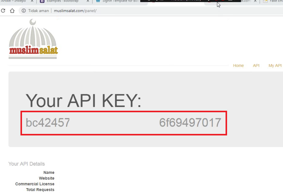 6. Kamu akan dialihkan ke halaman utama, disana terdapat APIKEY yang wajib kamu simpan.