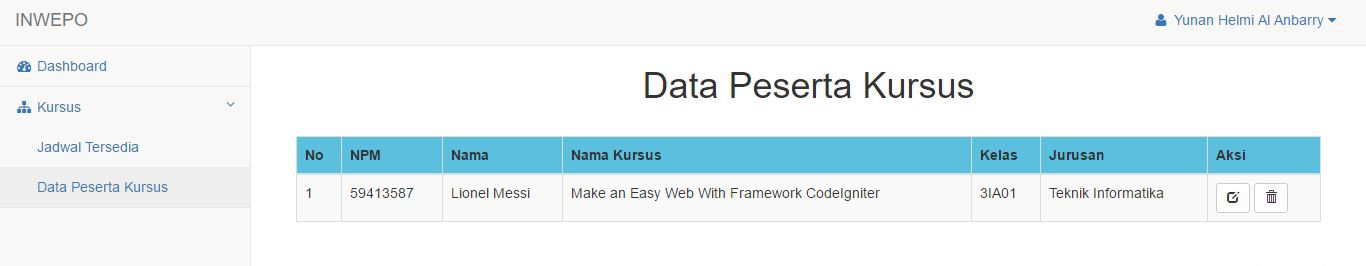 Akhir kata penulis sampaikan terima kasih atas partisipasi pembaca setia inwepo yang mengikuti proses pembuatan website pendaftaran kursus menggunakan codeigniter ini. Nantikan proses pembuatan halaman admin ya! Salam koding…