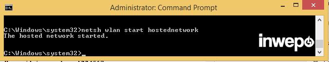 3. Kemudian mengakifkan ketikkan: netsh wlan start hostednetwork.