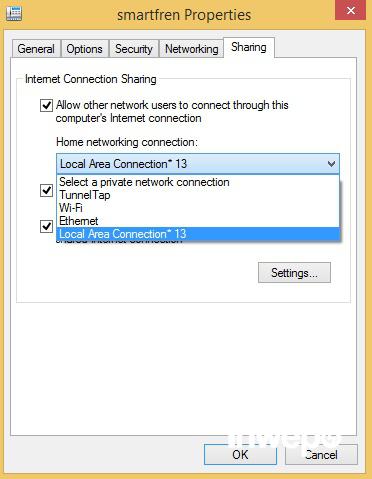lalu pilih Home networking connection: “Local Area Connection 13“.