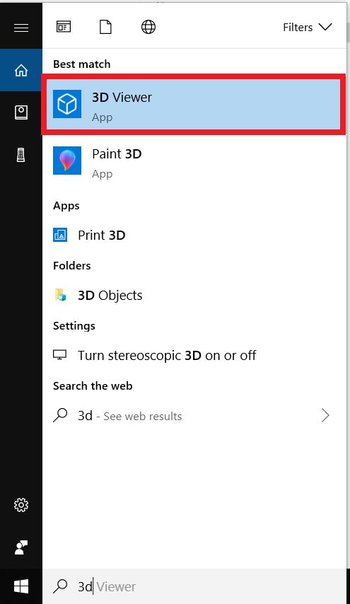 1. Pada kolom pencarian di Start menu kamu ketik 3d Viewer dan kamu pilih aplikasi pertama yang muncul dengan icon seperti gambar di bawah ini.