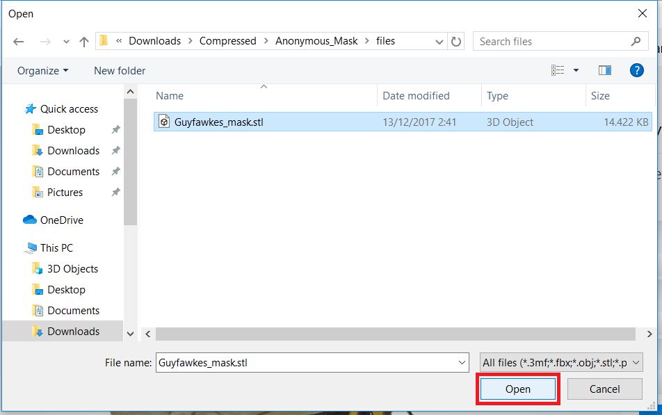 4. Lalu kamu cari berkas obyek 3D kamu dan klik Open.