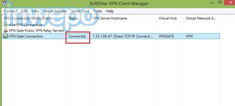 6. Status Connected bila berhasil terhubung.