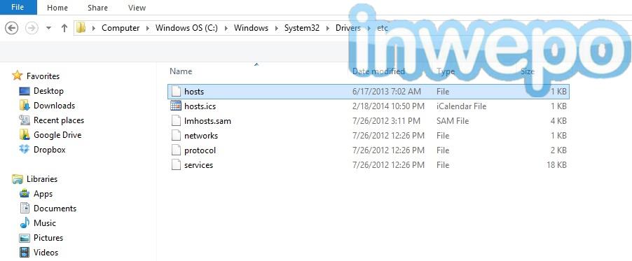 1. Buka File exploler (Windows+E) dan masuk ke folder C:WindowsSystem32Driversetc