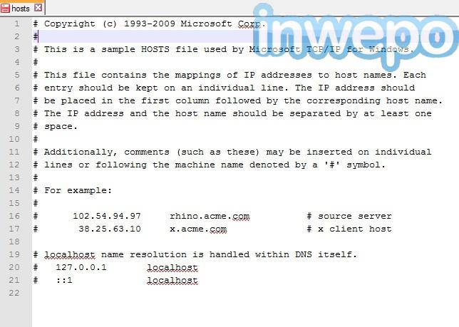 2. Di sana terdapat nama file “host” buka menggunakan notepad, Jika terdapat nama-nama situs yang tidak bisa dibuka brarti kamu mengalami masalah yang sama seperti penulis.