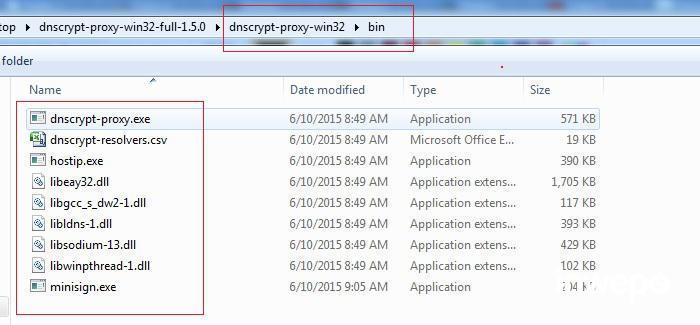 3. Setelah itu copy file di dalam folder bin yg terdapat di file download ke folder C:\Program FIles\DNSCrypt yang telah di buat tadi (Filenya yg di copy jangan sama foldernya)