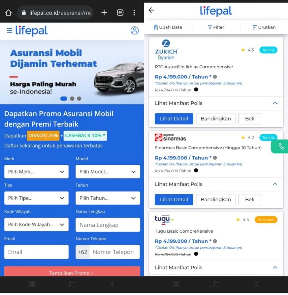 1. Buka situs https://lifepal.co.id/asuransi/mobil melalui browser HP Android atau iPhone maupun Laptop atau PC kamu.