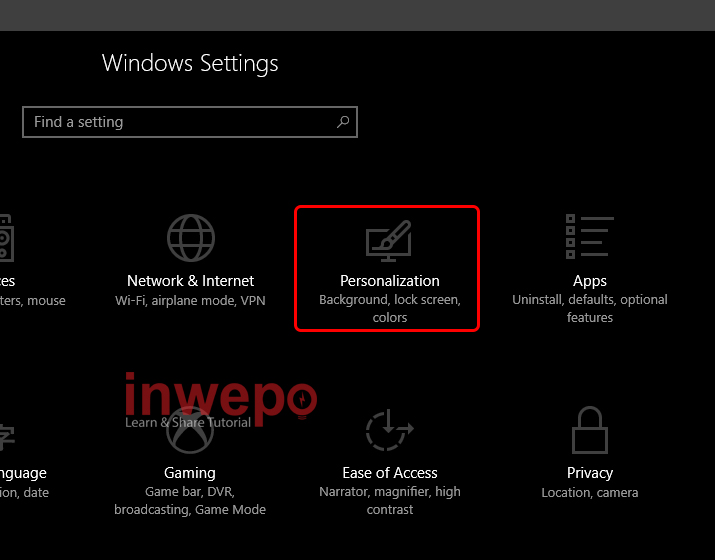 1. Pergi ke Windows Setting – Klik Personalization.