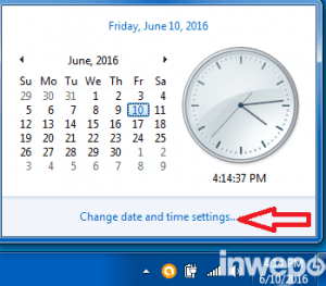 Masuk ke Change date and time settings, (Windows 7)