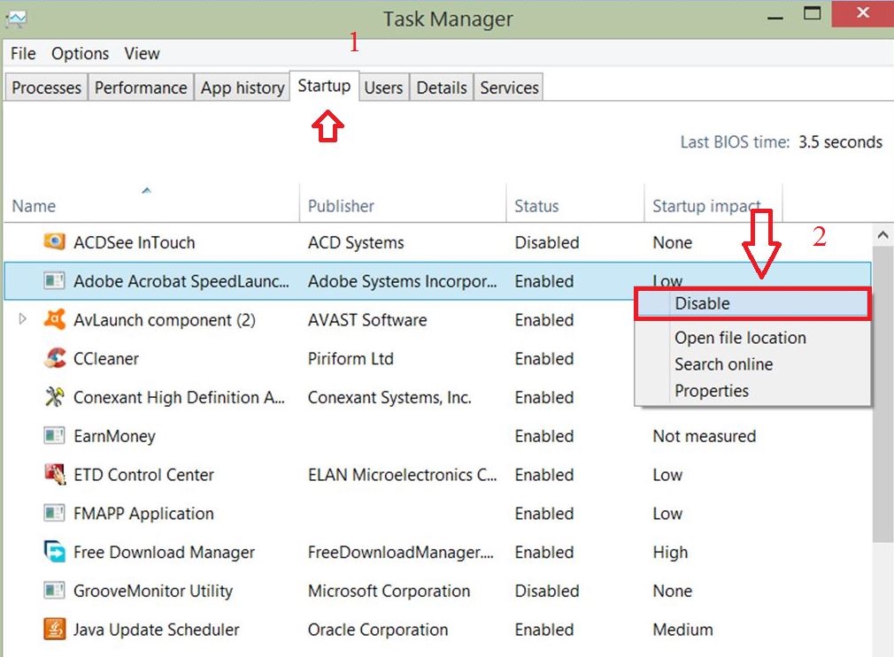 Maksud dari menonaktifkan aplikasi startup ini adalah ketika kamu ingin menghidupkan laptop atau komputer, maka sistem aplikasi yang dimatikan tidak dapat berjalan secara otomatis. Cara untuk melakukannya: kamu buka Task Manager, kemudian pilih Startup. Namun untuk lebih cepat, tekan di keyboard: CTRL+SHIFT+ESC.