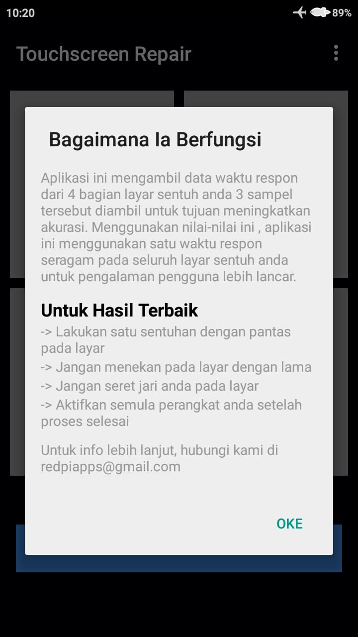 Pada tutorial akan menggunakan aplikasi pihak ketiga yang bernama “touchscreen repair” yang dapat di download secara resmi di Play Store. Silahkan simak tata caranya di bawah ini, harap diperhatikan setiap langkahnya.