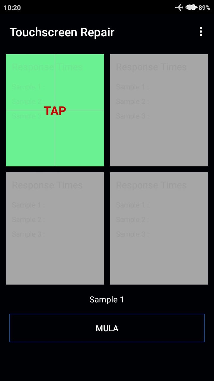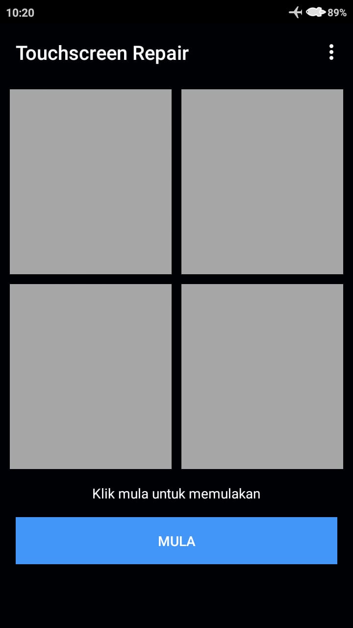 3. Kemudian akan ditampilkan menu utama dari aplikasi, untuk memulai memperbaiki respon layar silahkan kamu klik menu “mula“.
