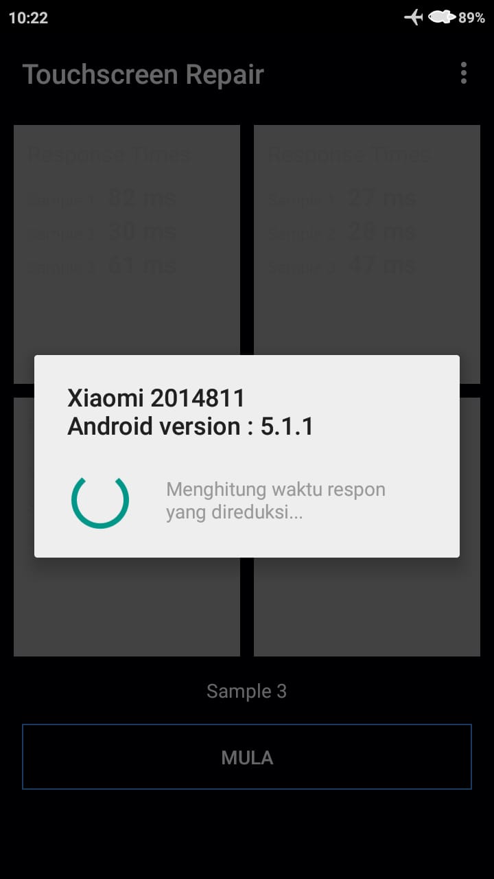 5. Tahap selanjutnya aplikasi akan menghitung waktu respon layar sentuh smartphone Android kamu dan melakukan perbaikan secara otomatis.