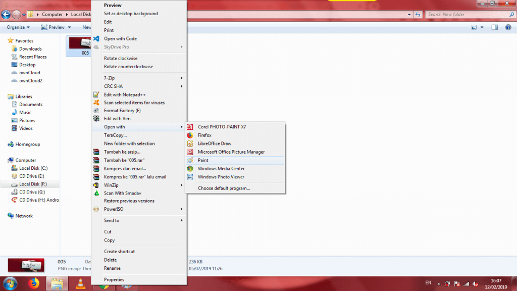 2. Klik kanan pada gambar – pilih Open With – Paint.