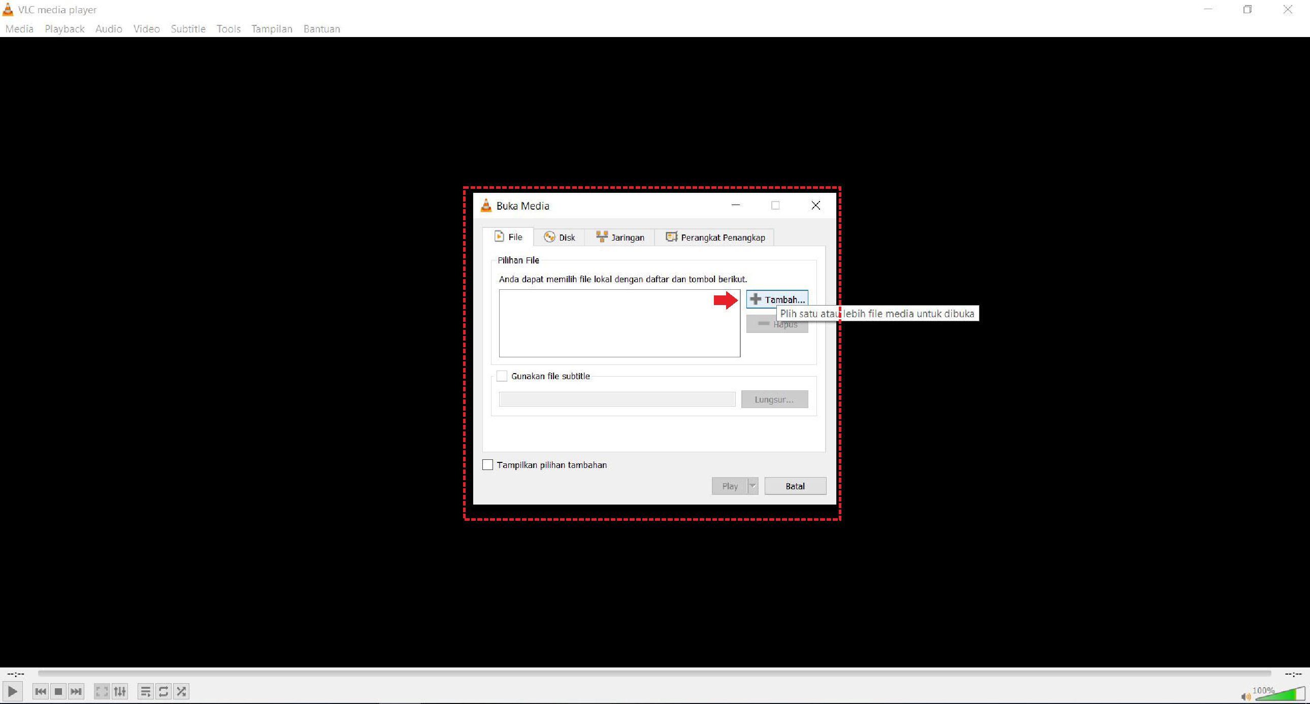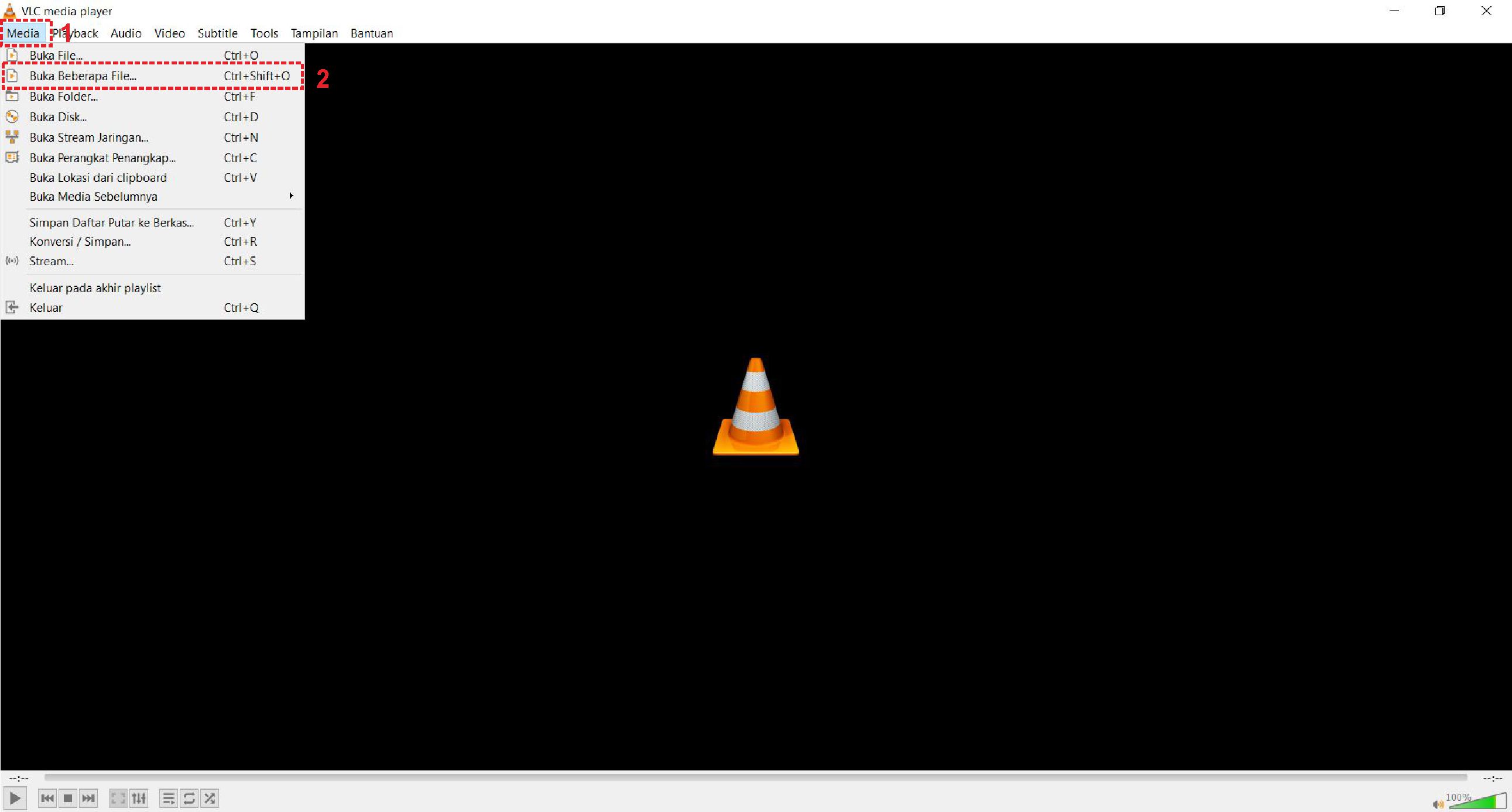 2. Setelah masuk ke menu awal, pilih tab Media, kemudian pilih “Buka beberapa file”.
