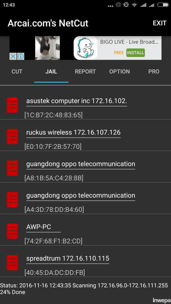 3. Jalankan aplikasi Netcut, nanti akan terlihat daftar pengguna internet dalam 1 jaringan Wi-Fi.