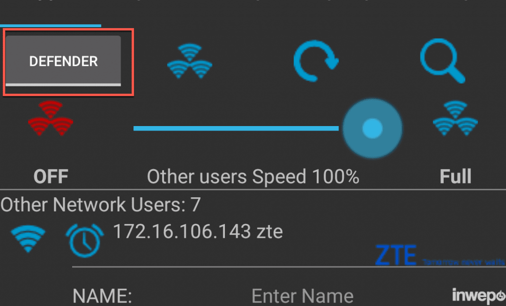 5. Pilih list orang yang ingin kamu coba, lalu untuk langsung mematikan koneksi orang tap icon Wi-Fi menjadi warna merah (off) atau jika ingin mengurangi kecepatan internet orang tersebut silakan geser di menu speed (lihat gambar di bawah).