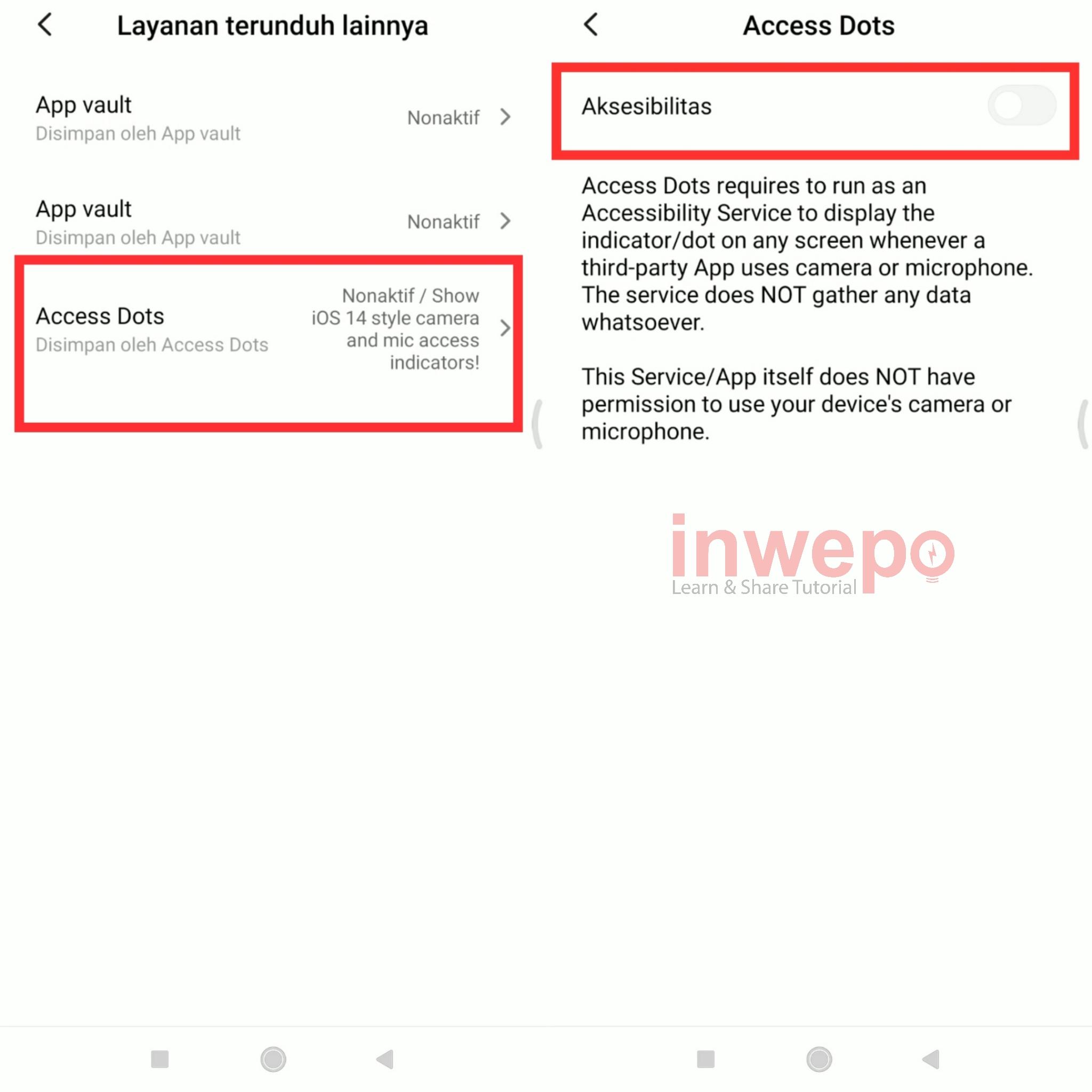 3. Pilih yang Access Dots, kemudian aktifkan tombol Aksebilitas dari Access Dots.