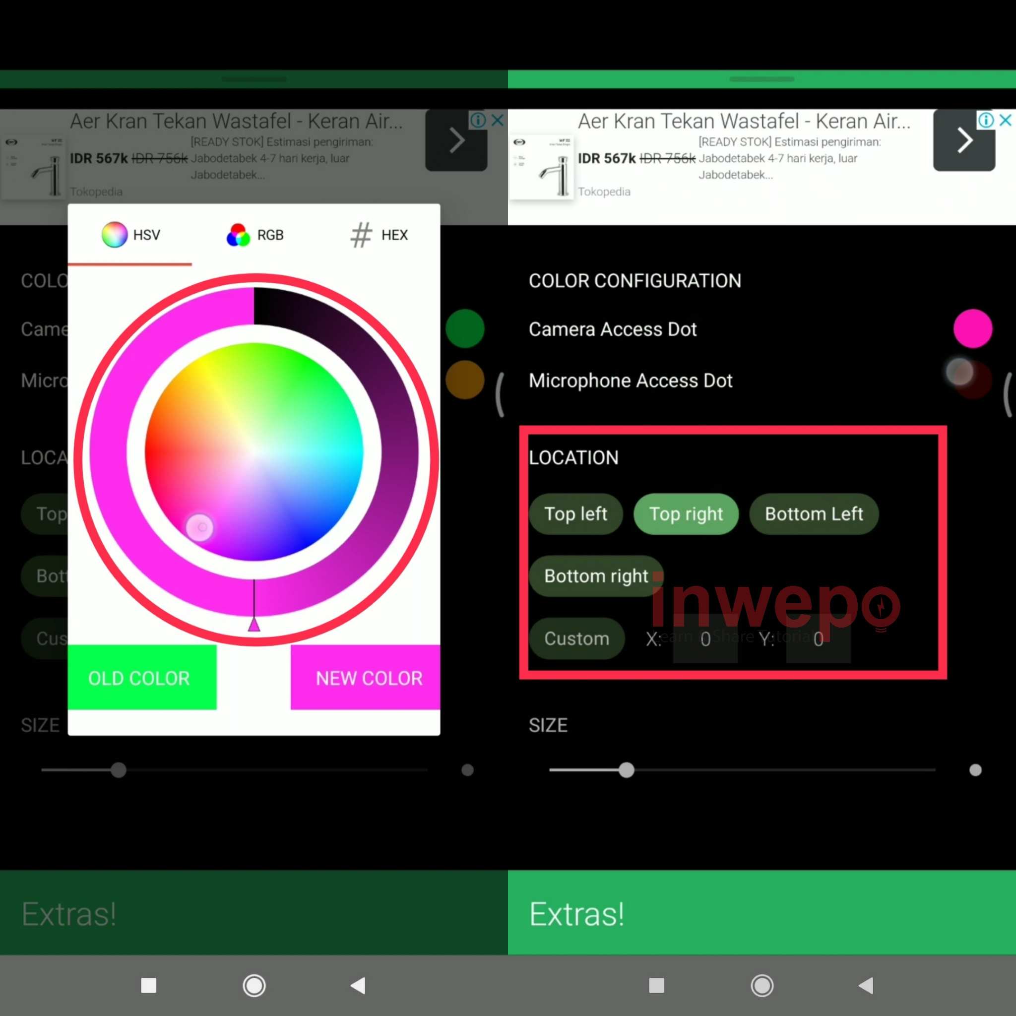 5. Kamu bisa mengembalikan ke warna lama dengan memilih menu OLD COLOR atau memilih warna baru dengan tap menu NEW COLOR. Kemudian gunakan menu Location untuk memilih penempatan dots.